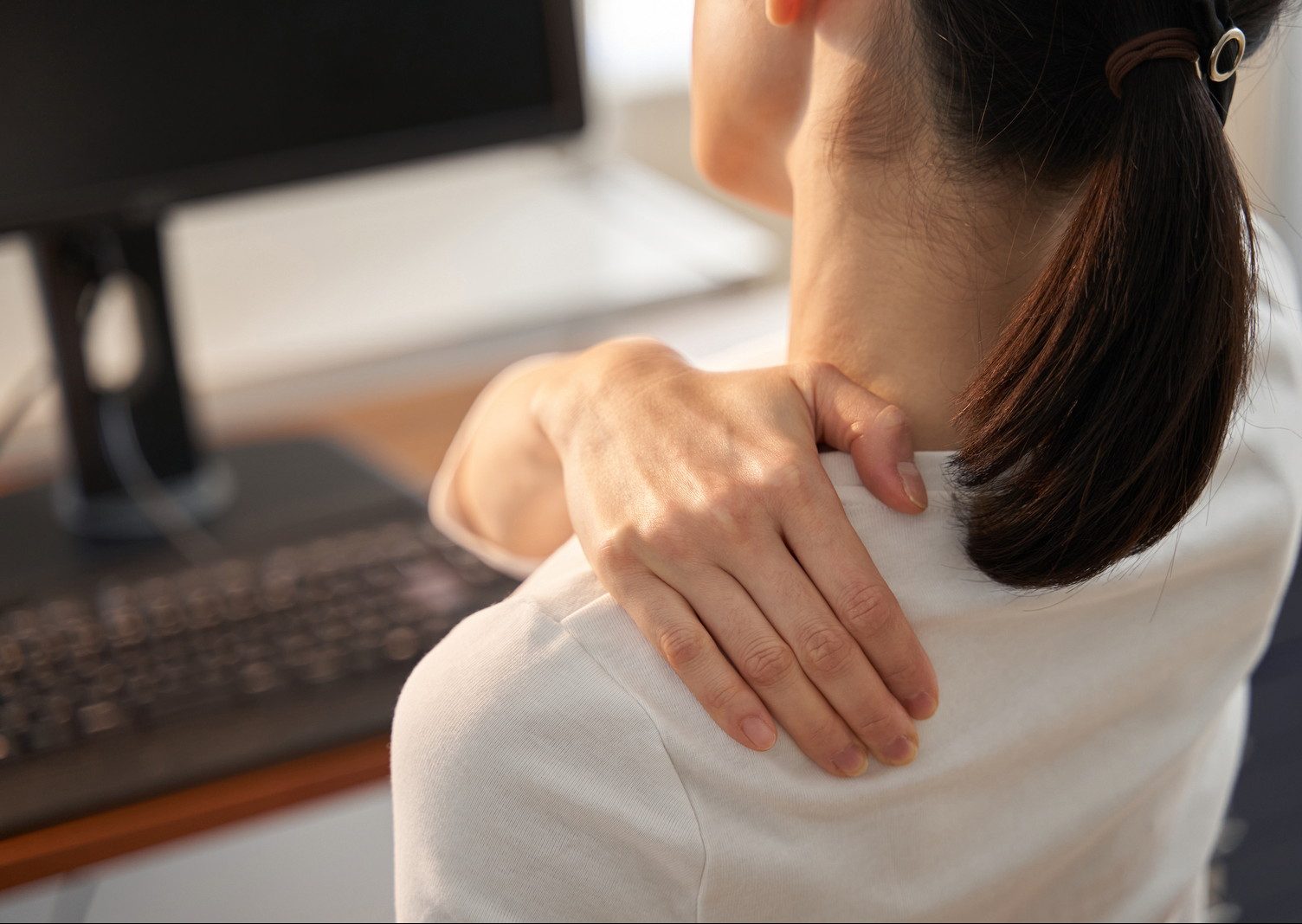 姿勢の悪さや、長時間のデスクワークによる同じ姿勢が続くといったことが原因で筋肉が疲労し、痛みやしびれの症状として現れることがあります。